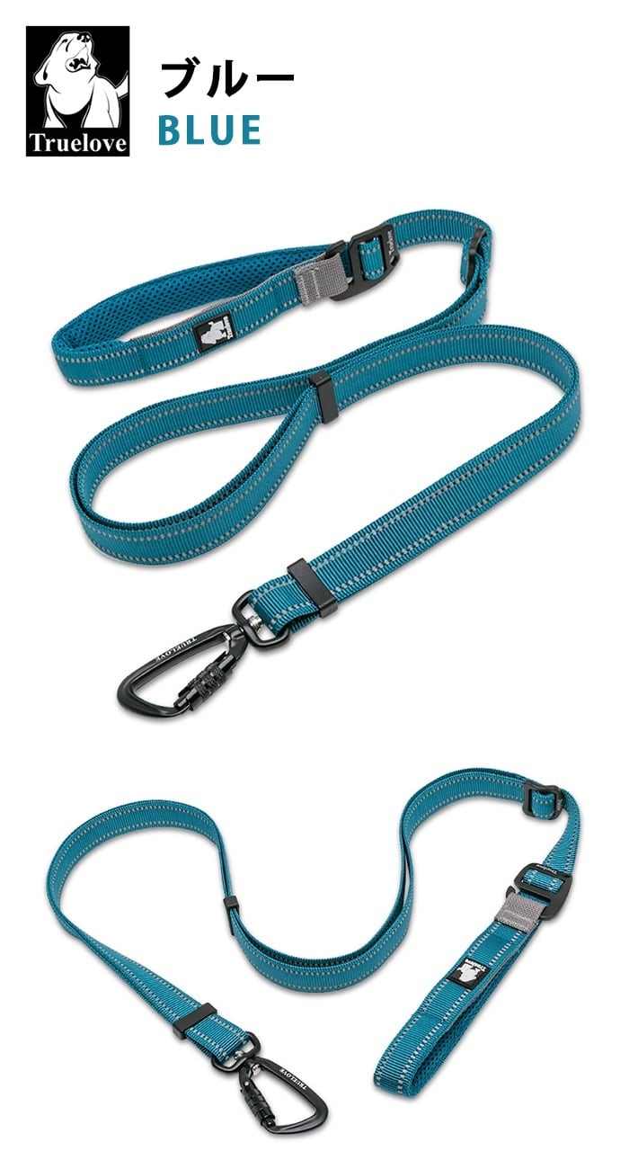 Truelove ウエストリード ショルダーリード ハンドルリード 3WAY リード 犬 中型犬 大型犬 腰巻き ハンズフリー 3M反射 耐久性 犬用 万能リード 丈夫 トレーニングリード ソフトハンドル 長さ調整可能 アルミ合金 TLL2671