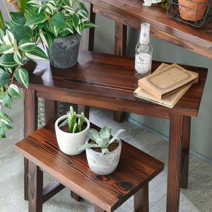 住まいスタイル 焼杉スツール風スタンド 3点セット YT-406080Y<br>コンソールテーブル サイドテーブル テーブル ラック スタンド プランター 花台 台 木製 ウッド おしゃれ 玄関 室内 リビング ガーデン インテリア