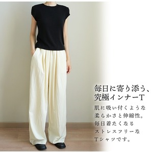 超柔らか ストレッチ Tシャツ カットソー インナーTシャツ レディース トップス シンプル 肌に優しい エコ素材 伸びる 高伸縮 快適 重ね着 インナー 無地 ブラック アイボリー 5688514 スイモク【水沐良品】