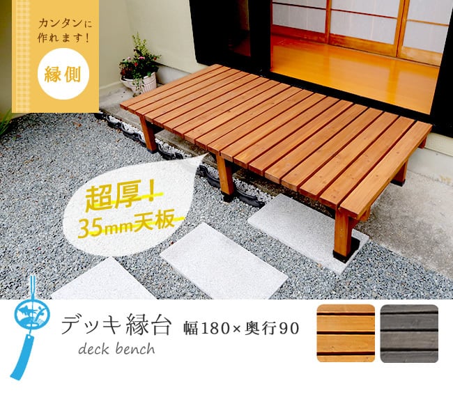 住まいスタイル デッキ縁台 180×90cm【送料無料 ウッドデッキ風 簡単 縁側 本格的 DIY 木製 天然木 庭 ベランダ マンション おしゃれ 小型 北欧 ガーデン 屋外 家具 ライトブラウン ダークブラウン】