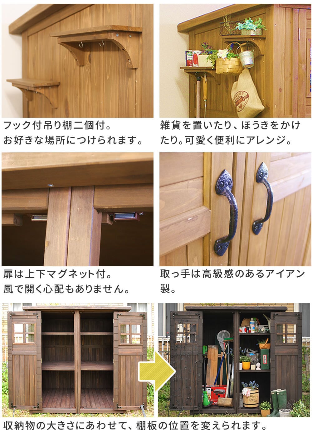 住まいスタイル カントリー小屋(大サイズ) 【送料無料 物置 倉庫 収納庫 天然木 木製 庭 物入れ おしゃれ 大型 北欧 ナチュラル ガーデニング キャンプ スポーツ 屋外 家具 ライトブラウン ダークブラウン】