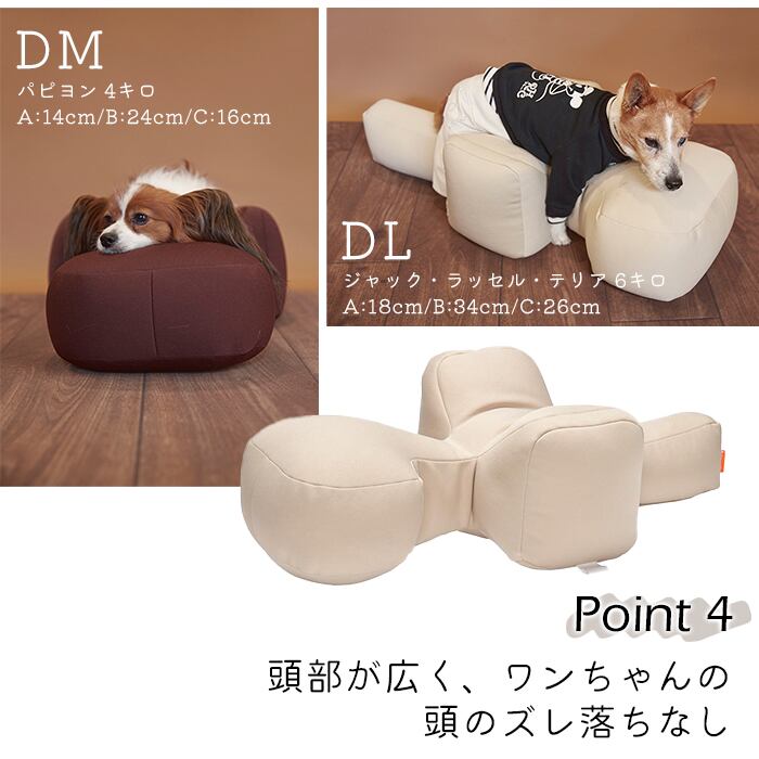 Aクッションの変形が大きく体勢が不安定になるおそれがあるため目安を大きく超えたワンちゃんのご利用はご遠慮ください。