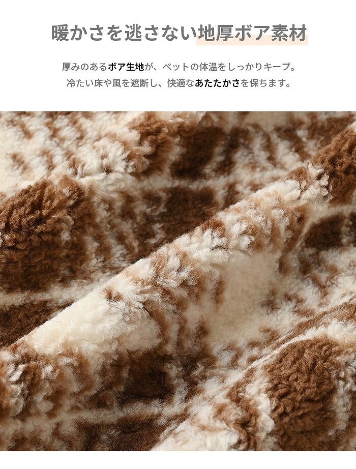厚みのあるボア生地が、ペットの体温をしっかりキープ。