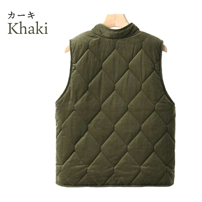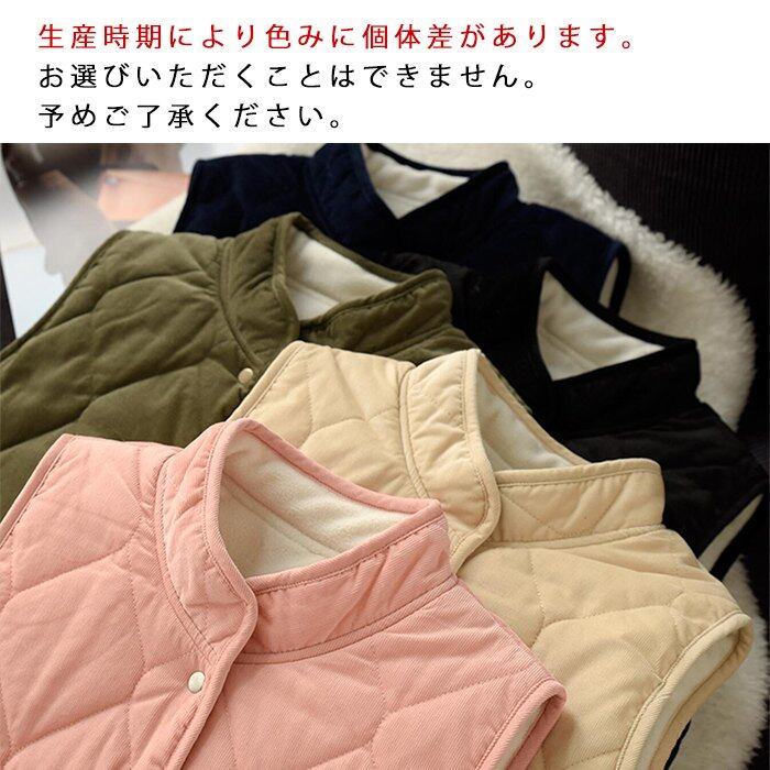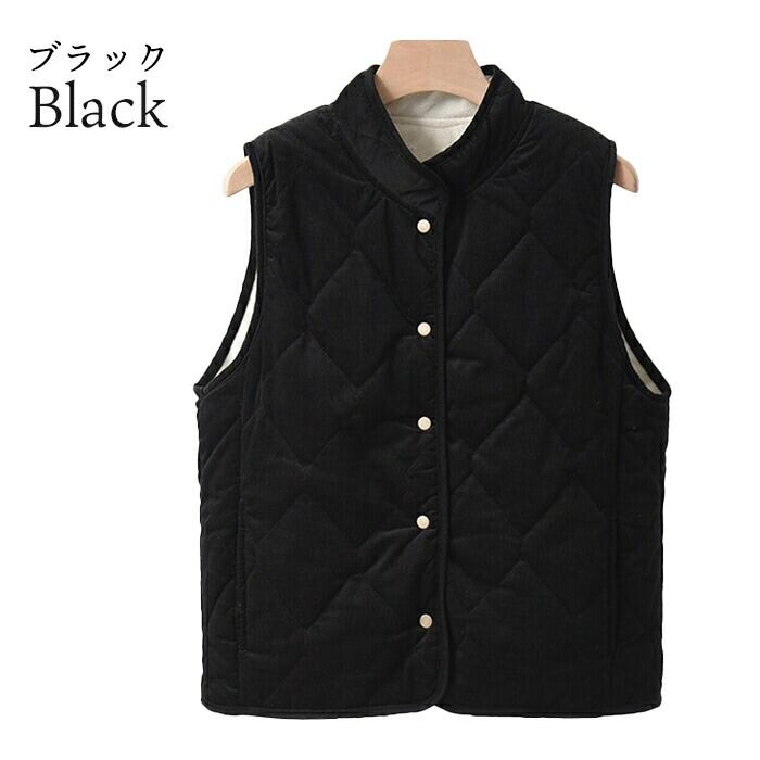 新作 中綿ベスト 裏フリース コーデュロイ生地 M?XXLサイズ 冬 防寒 レディース もこもこ キルティングベスト 大きいサイズ 前開き 暖かい 保温 軽い 部屋着 寒さ対策 立ち襟 母の日 プレゼント 5676912 スイモク【水沐良品】