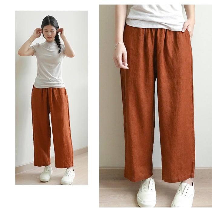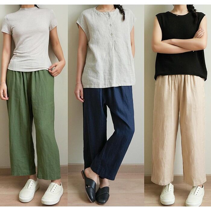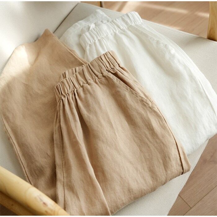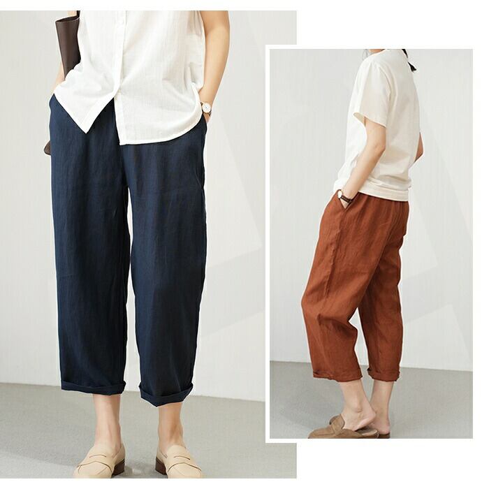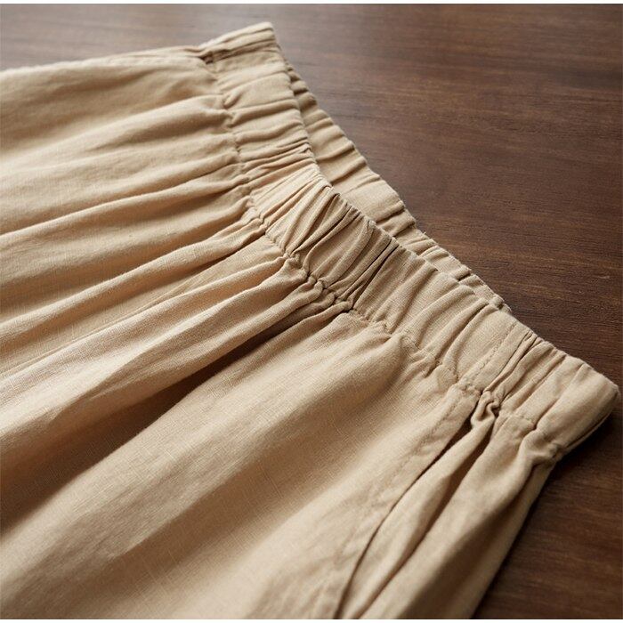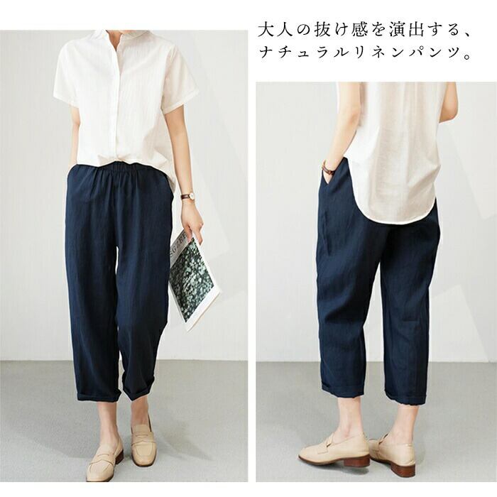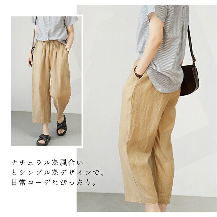 リネン100% リネンパンツ 麻 リネン パンツ 8分丈 レディース 麻パンツ 無地 おしゃれ 体型カバー カジュアル 着回し ゆったり ウエストゴム シンプル 春 夏 秋 涼しい 天然素材 定番 ナチュラル 5682369 スイモク【水沐良品】