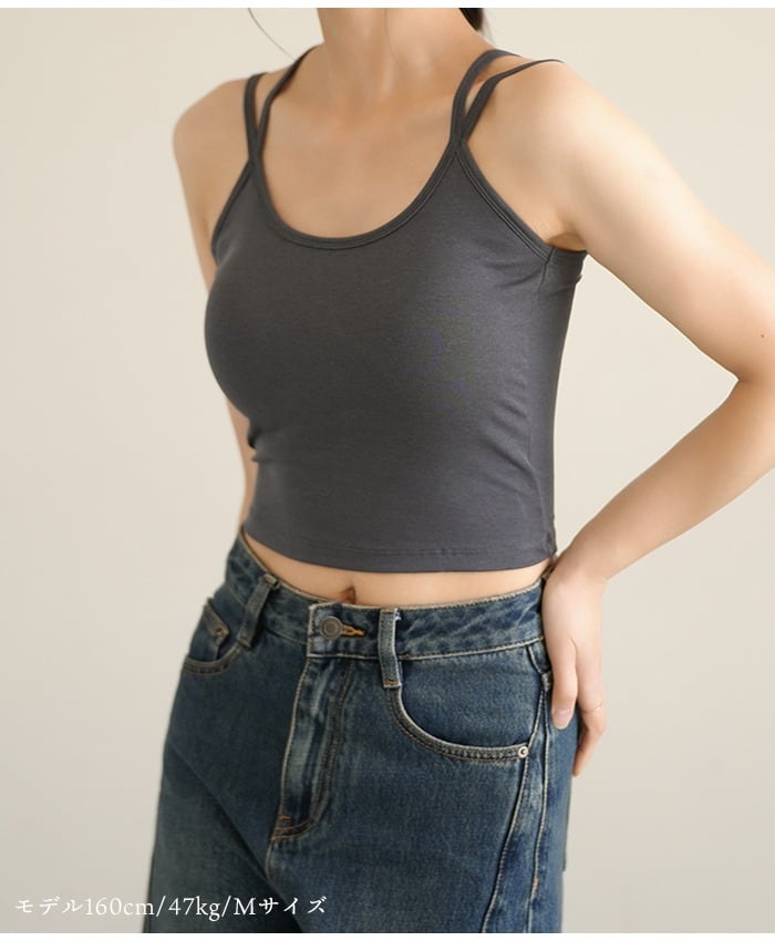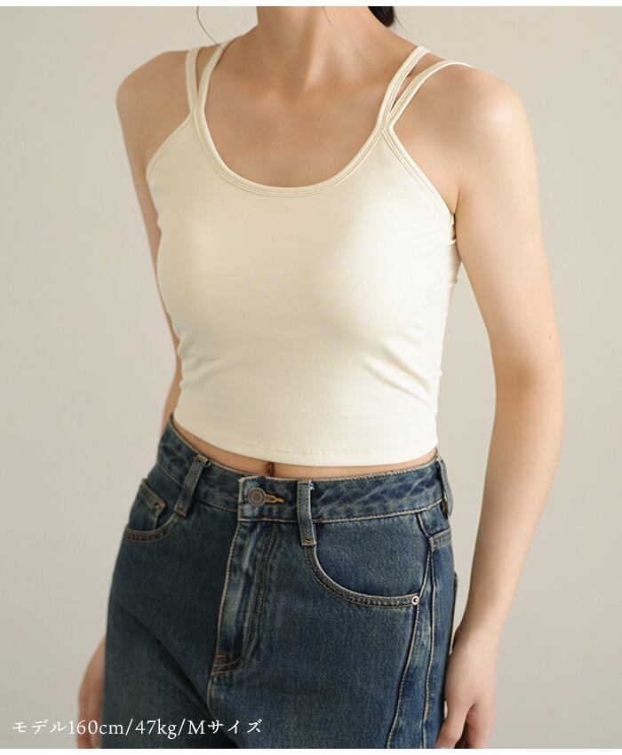 キャミソール カップ付き バッククロス 美シルエット レディース ブラトップ 背中 背中見せ 重ね着 ノースリーブ 下着 肌着 婦人 インナー ブラキャミ ブラ デイリー 柔らかい 短め丈 伸縮性 無地 体型カバー 春 夏 秋 5686801 スイモク【水沐良品】