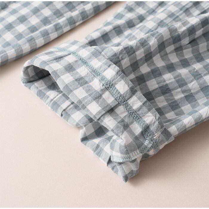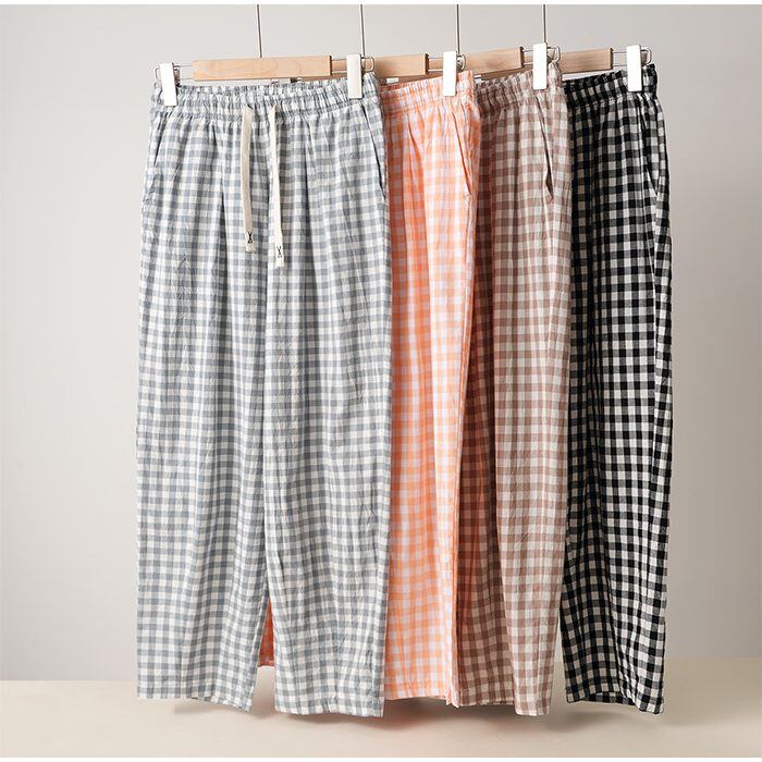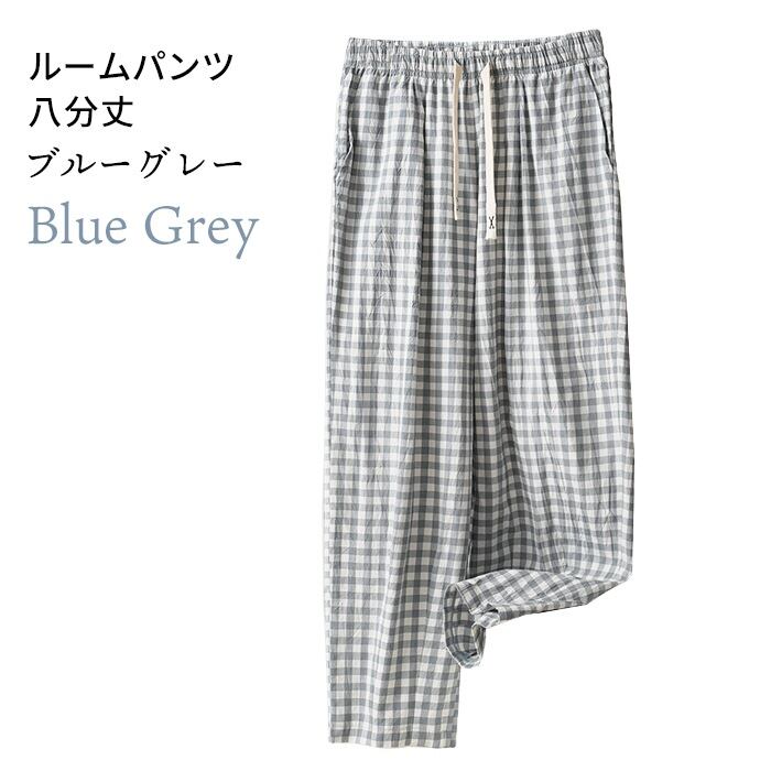 綿100% ルームパンツ 8分丈 チェック柄 パジャマ 快適 部屋着 ポケット付き 八分丈 ルームウェア レディース 春 夏 長ズボン ナイトウェア コットン 可愛い オシャレ 寝巻き 肌に優しい 綿 コットン 5687234 スイモク 【水沐良品】