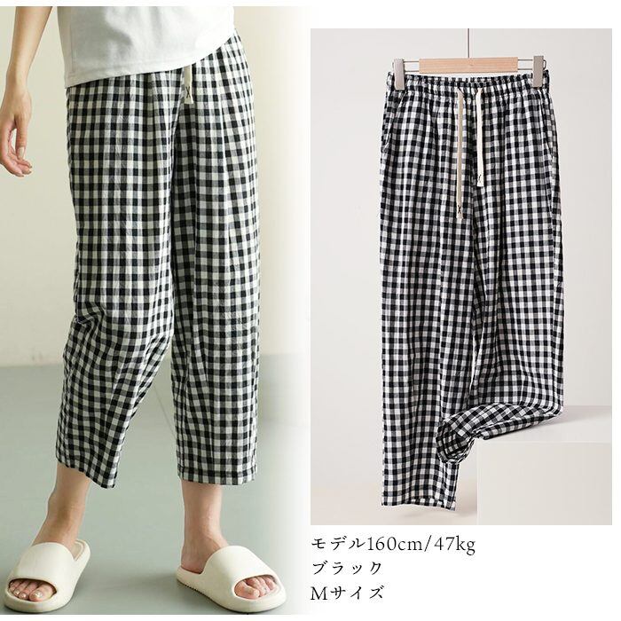 #さらりとした肌触り #ルームパンツ #綿100% #ギンガムチェック #軽量 #通気性抜群 #オールシーズン #ウエスト紐調節可能 #M?XLサイズ展開 #リラックスウェア #ナイトウェア #快適 #シンプルデザイン #カジュアル #部屋着 #パジャマ