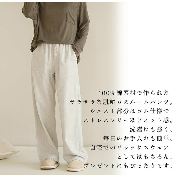 ルームパンツ 綿100% コットンパンツ パジャマパンツ 部屋着 サラサラ ルームウェア リラックスパンツ 快適寝具 Mサイズ Lサイズ XLサイズ おしゃれ シンプル カジュアル ラウンジウェア 部屋着パンツ ストレートパンツ ウエストゴム レディース プレゼント用 20代 30代 40代 50代 60代
