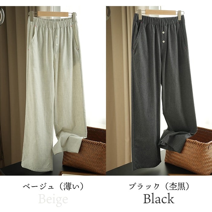 新作 綿100% ルームパンツ 寝巻き ロング丈 サラサラ パジャマ ゆったり ルームウェア ワイド レディース ポケット付き 春 夏 秋 冬 無地 シンプル 長ズボン ナイトウェア コットン 部屋着 5687240 スイモク【水沐良品】