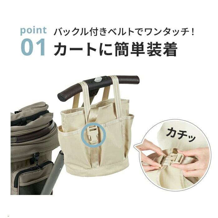 ●カートのハンドルに取り付ける際、ベルトは短い長さで装着してご使用ください。