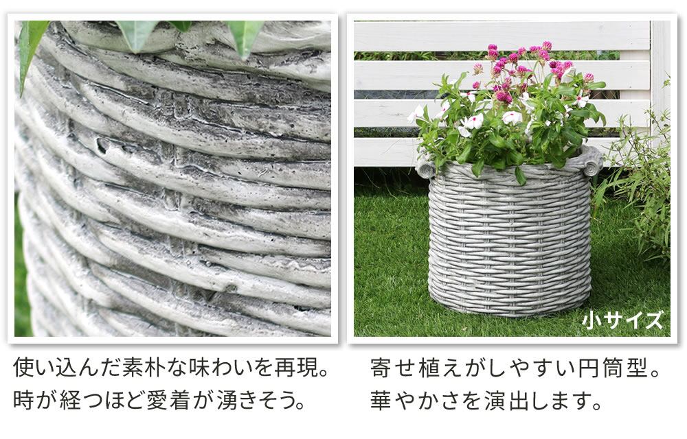 ※大は10号鉢、小は8号鉢に相当します。プランターカバーとしてお使いになる場合は、もう一回り小さいプランター(大は9号以下、小は7号以下)をお入れください。