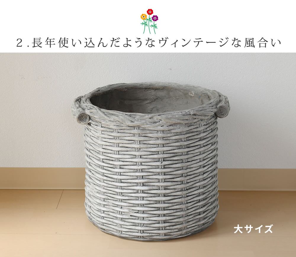 住まいスタイル バスケット調プランター 円型 大小2個組 ”Old Basket”(オールドバスケット) BSPL-2533WHT 送料無料 直径25cm 33cm ガーデニング ガーデンポッド プランター カゴ 鉢 プランター 鉢カバー おしゃれ 植木鉢 かご風プランター バスケット アンティーク