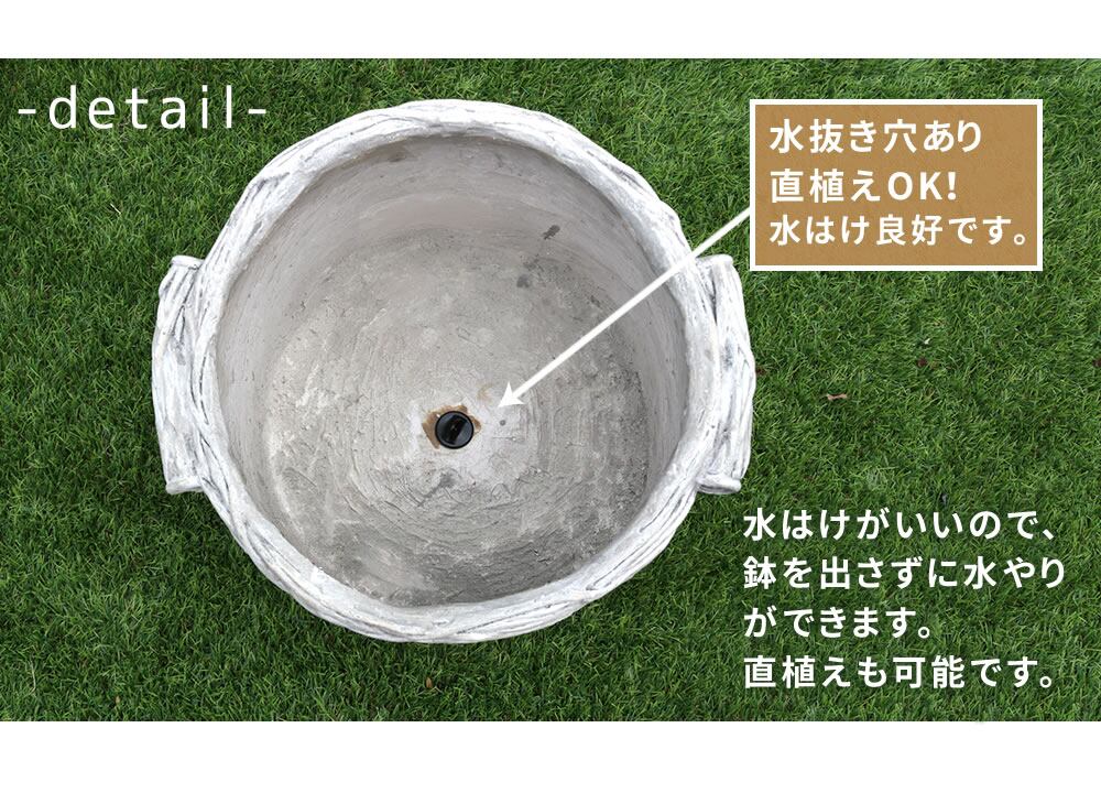 水抜き穴があるので直植えできますし、鉢カバーとしても優秀です。