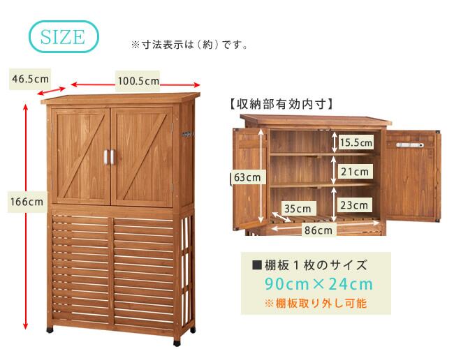 収納有効内寸:幅約860×奥行約350×高さ約630mm 室外機カバー有効内寸:幅約890×奥行約370×高さ約850mm
