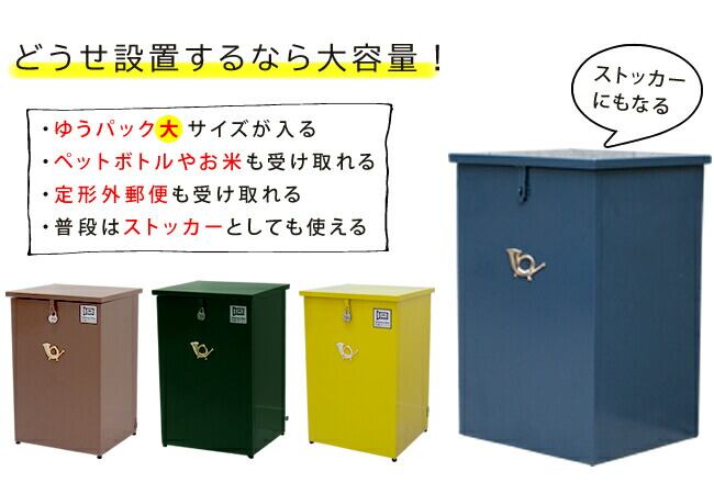 パカッと開けたらドン!と入れるだけの単純構造と、ゆうパック(大)が入る大容量サイズも魅力です。