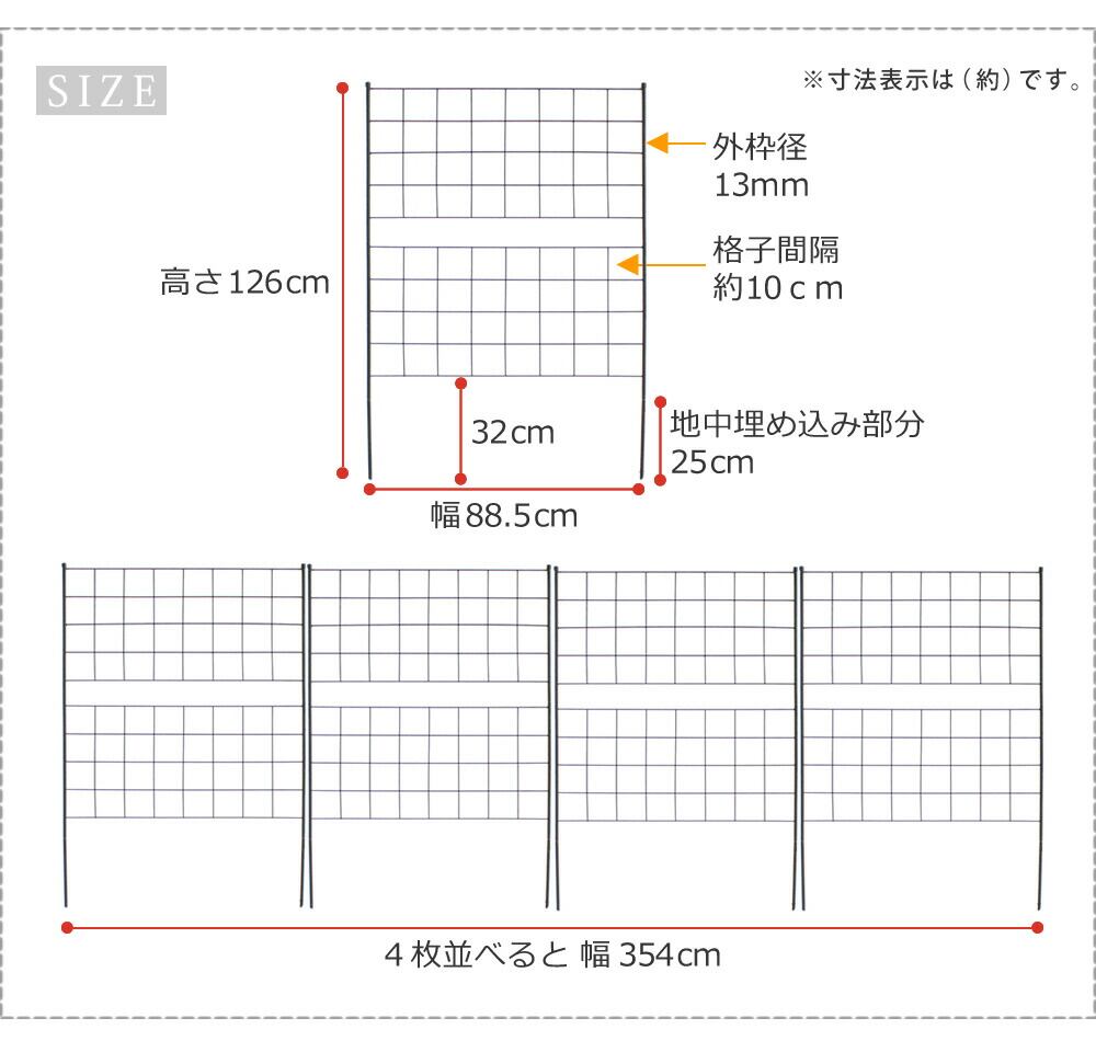 住まいスタイル アイアンフェンス 高さ126「グラフ」4枚組【送料無料 フェンス アイアン ガーデンフェンス ガーデニング 枠 柵 仕切り 目隠し 境目 クラシカル アンティーク 格子 ベランダ つる 薔薇 バラ 朝顔 園芸 ラティス つるバラ 庭誘引 屋外 】