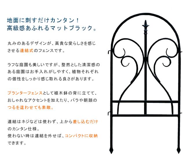 丸みのあるデザインが、高貴な愛らしさを感じさせる連結式のフェンスです。