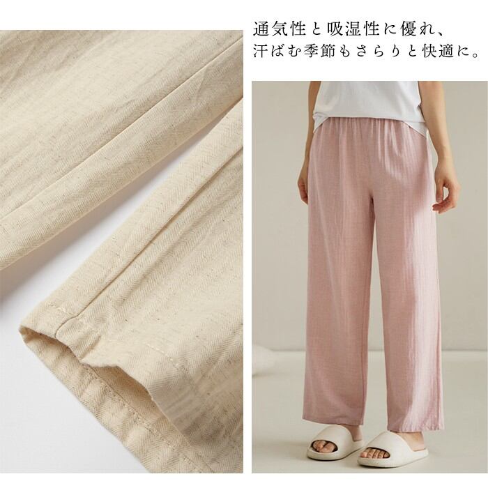 綿麻 綿 コットン リネン ルームパンツ レディース コットン リネン パンツ リネン混 部屋着 春夏秋 ナチュラル ルームウェア 涼しい パジャマ ボトムス 通気性 吸湿性 快適パンツ 軽い 快適 ポケット付き