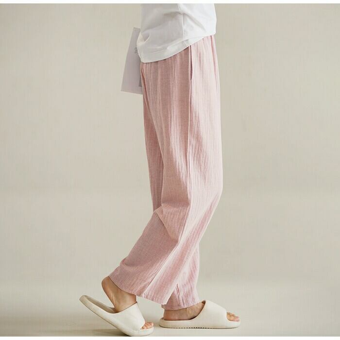 新作 パジャマ ズボン だけ 綿xリネン コットン リネン ルームパンツ 夏 ロング丈 ルームウェア レディース ポケット付き 春 長ズボン ナイトウェア ウエストゴム シンプル 薄手 軽い 快適 部屋着 J-89198 スイモク【水沐良品】