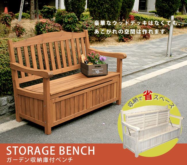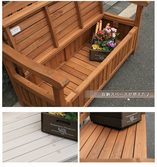 【ガーデン収納庫付ベンチ ブラウン/ホワイト】