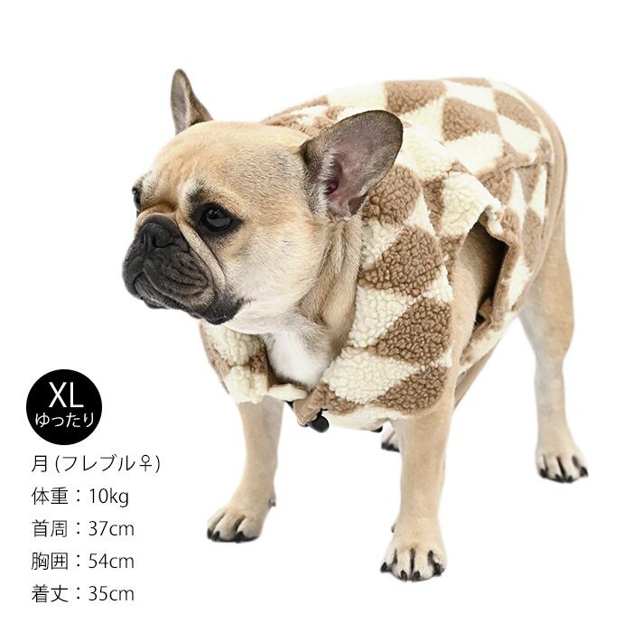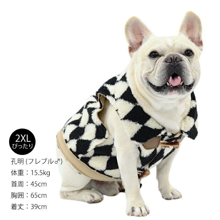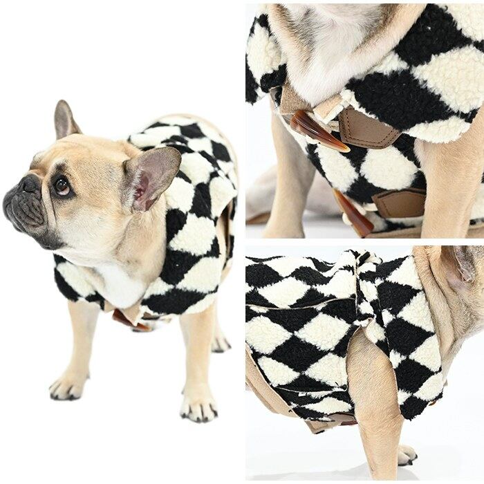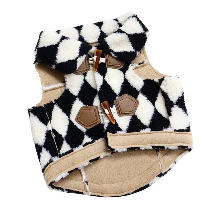 ボアベスト 犬服 犬 ボア ベスト 裏フリース 冬服 フレンチブルドッグ服 パグ服 フレブル アーガイル柄 冬 犬 服 ジャケット ボア素材 おしゃれ 暖かい アウター 防寒 ドックウェア いぬ ペット服 かわいい KM279T