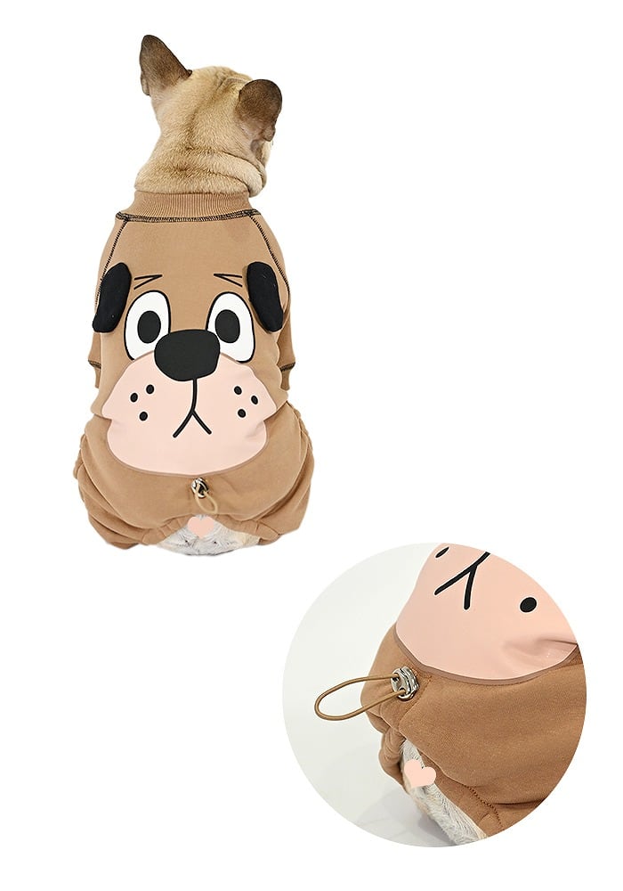 犬 服 ロンパース 裏ボア あったかロンパース 厚手 犬顔プリント ドッグフェイス お尻調整紐あり 中型犬 フレンチブルドッグ フレブル 冬服 犬冬 散歩 おしゃれ ブラウン 茶色 送料無料 KM593OP