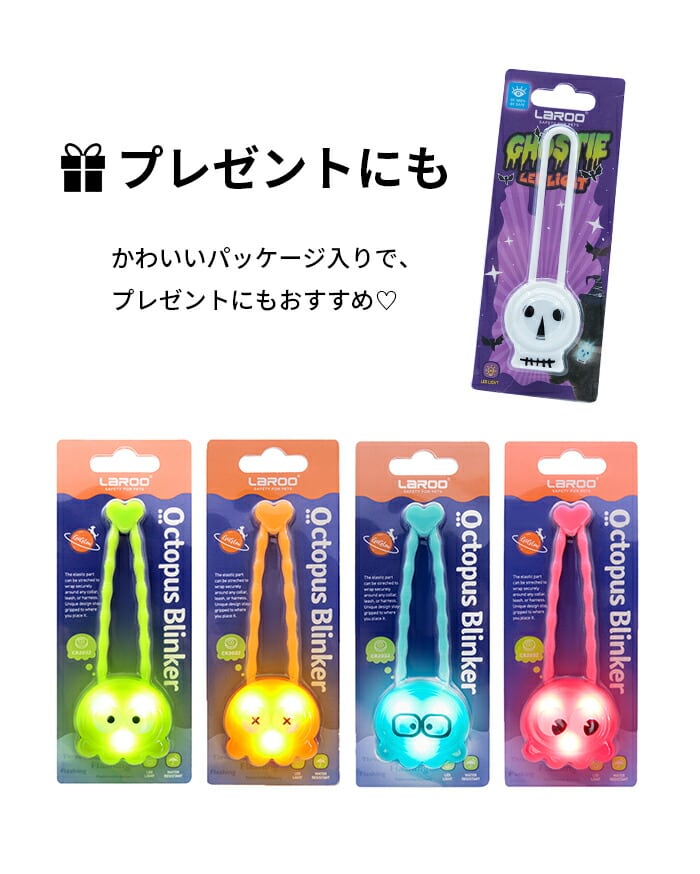 ペットの安全を守るタコ&スカルのキュートなライト♪