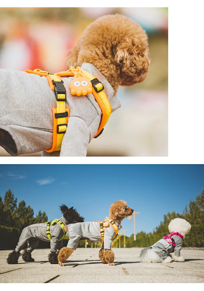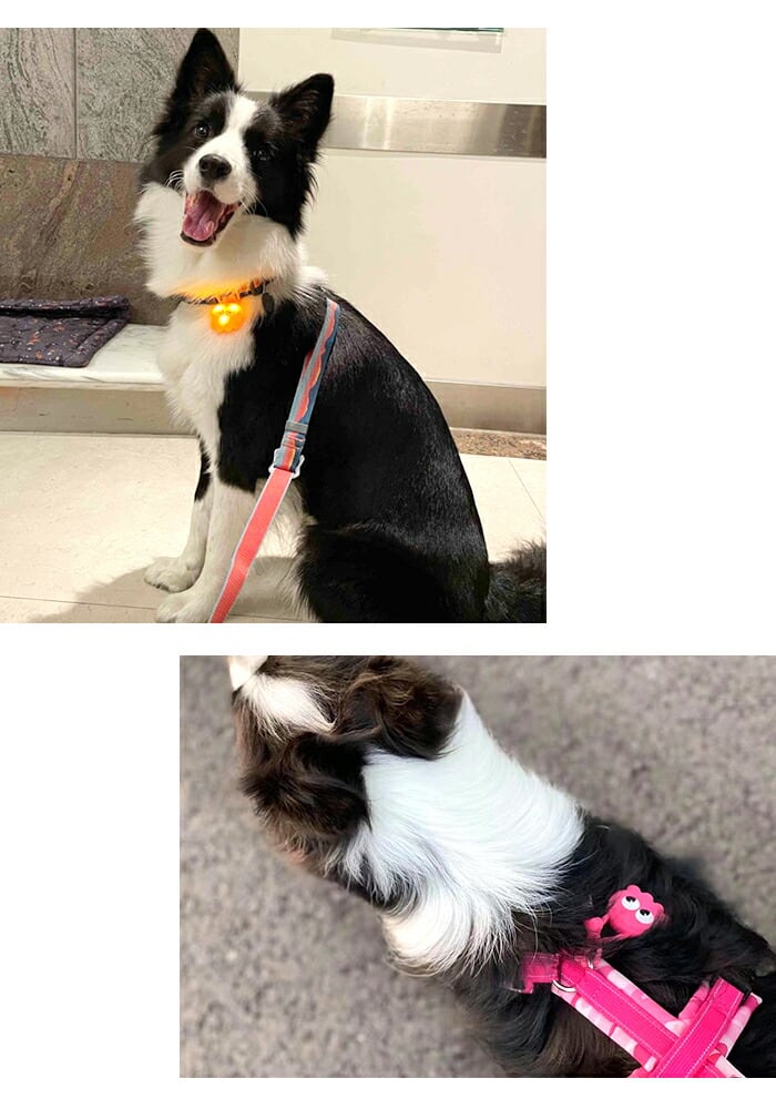 シリコン素材で軽量設計のため、首輪やハーネスに