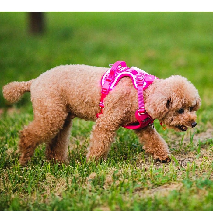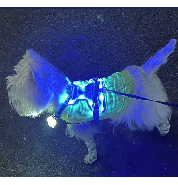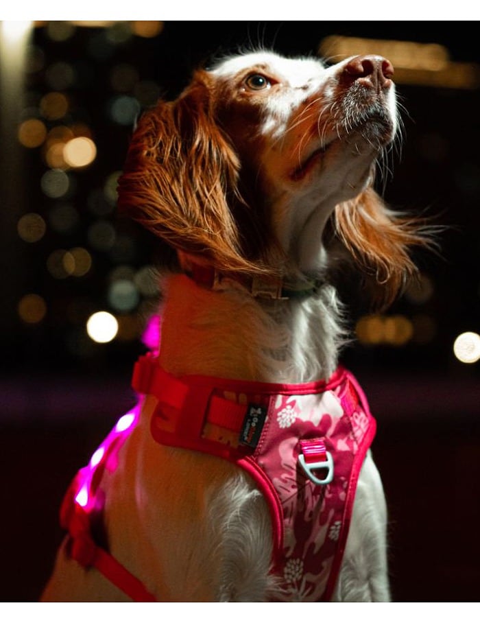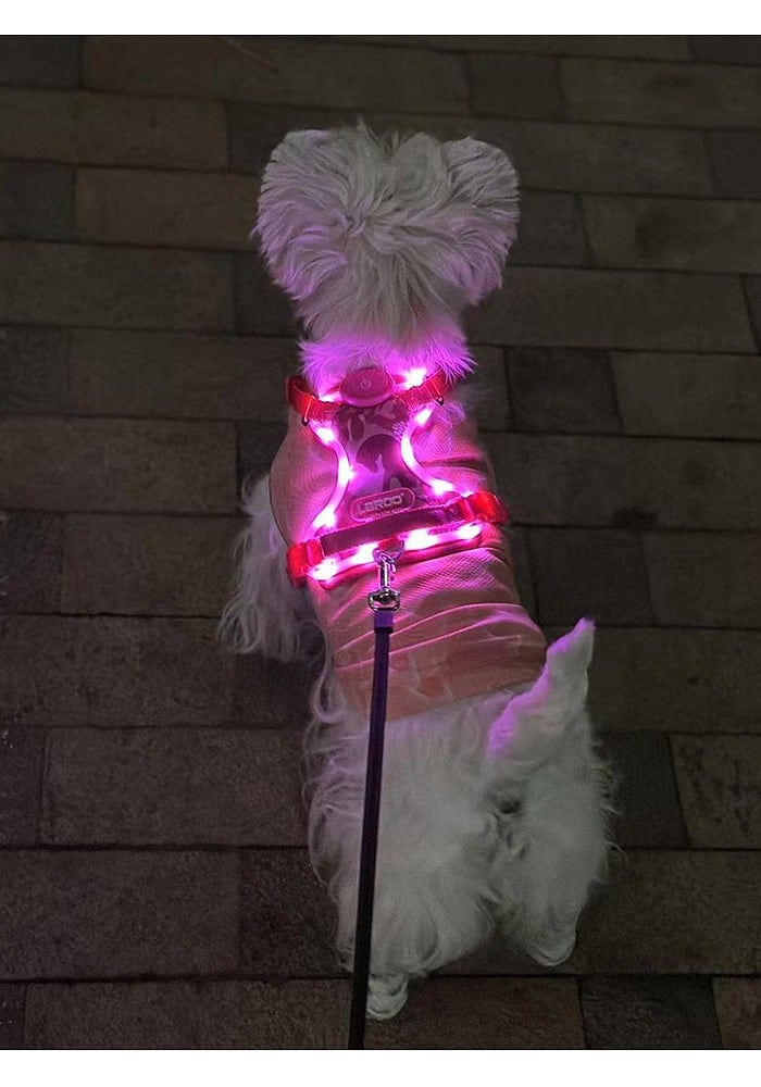 暗い道でも愛犬をしっかり守る 光るLEDライトハーネス。