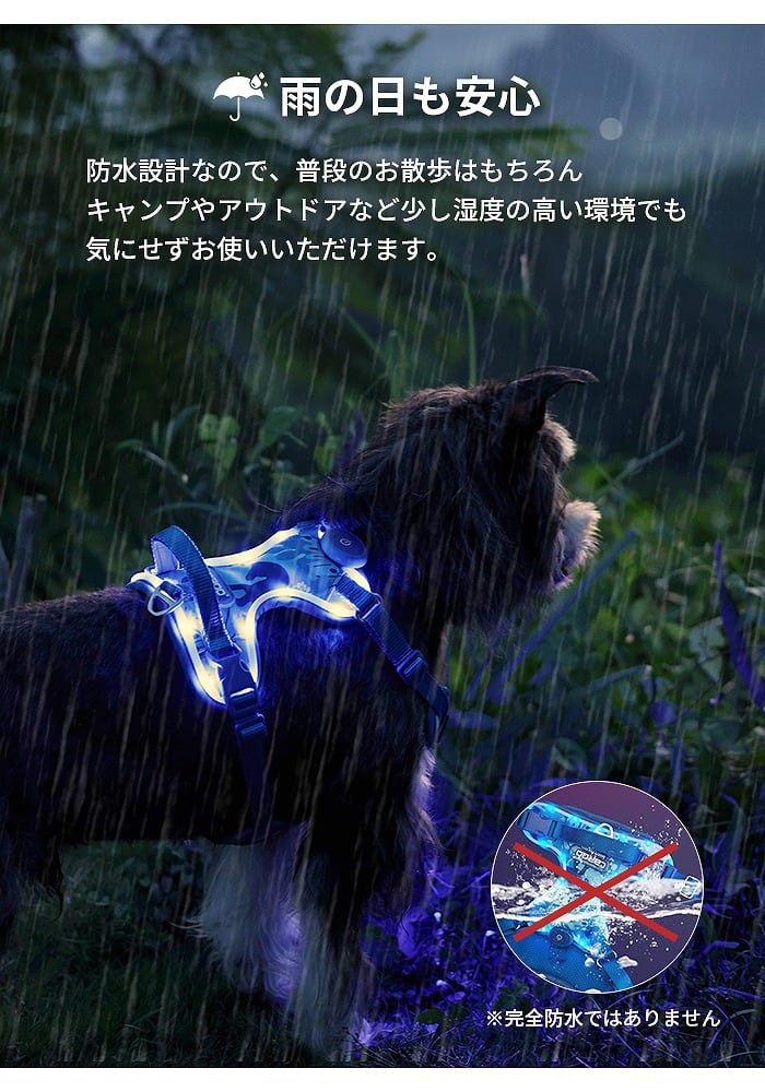 犬用 LED ライト 光 ハーネス 防水 USB充電 明るい 光る 夜間 散歩 視認性 安心安全 小型犬 中型犬 大型犬 点灯 点滅 ペット用 ドッグラン 夜 事故防止 安全グッズ ピンク ブルー LR9944