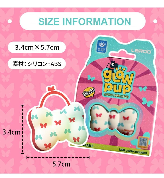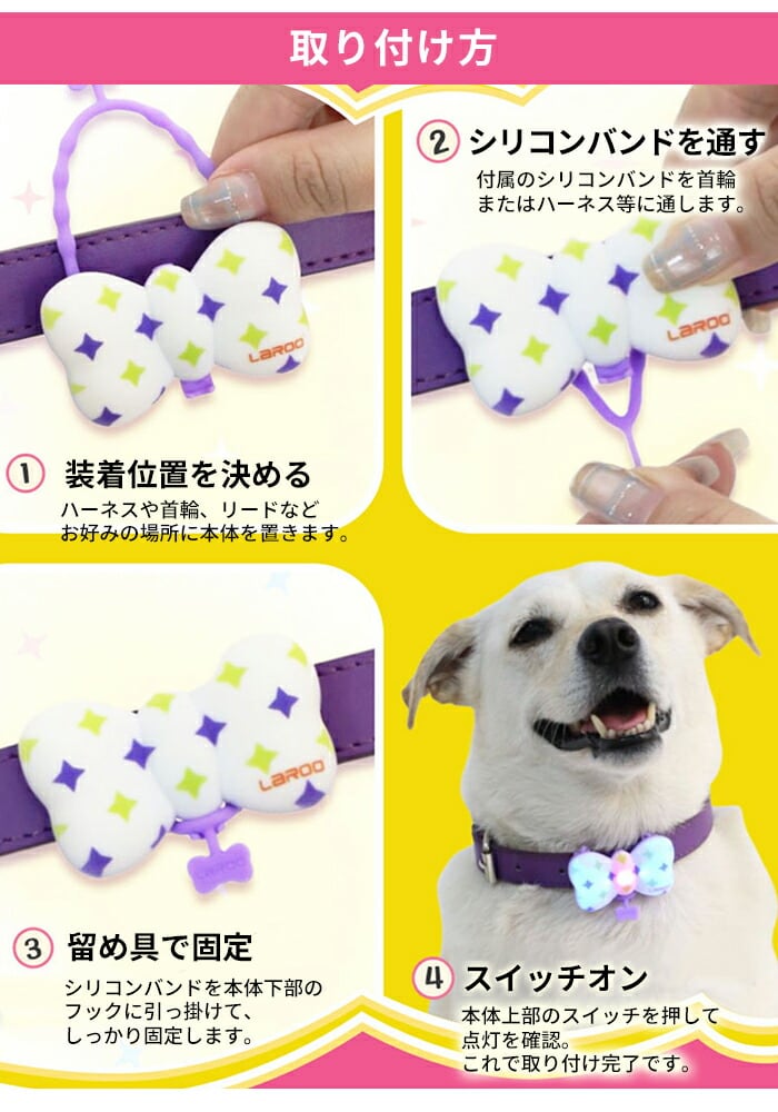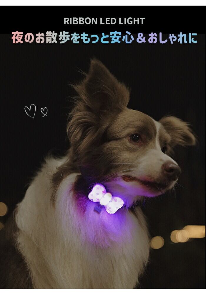 【無料簡易ラッピング対象】犬用 LED ライト 光 リボン型 やさしい光 ふんわり光る 防水 IP65 USB充電 明るい 夜間散歩 首輪取り付け ハーネス取り付け 安全基準クリア 中型犬 大型犬 リード取り付け 点灯 点滅ペット用 ドッグラン 夜 安全 事故防止 安全グッズLR9969