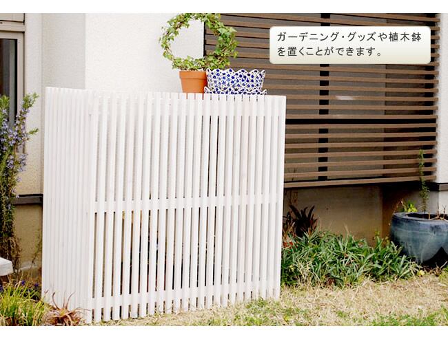 住まいスタイル モダンエアコン室外機カバー 縦ストライプ【送料無料 室外機 簡単組立 省エネ 節約 ボックス 柵 枠 屋外 ガーデニング 目隠し 境目 木製 天然木 園芸 ダークブラウン/ホワイト】