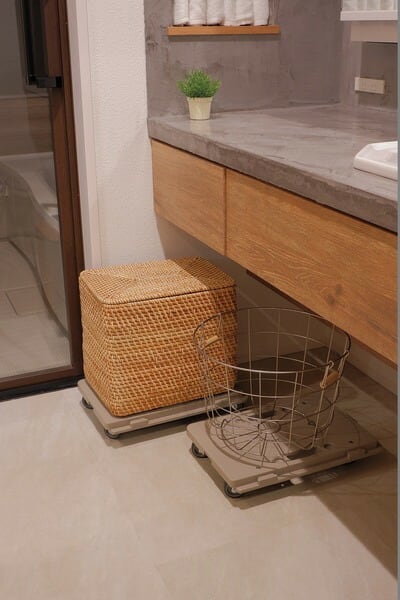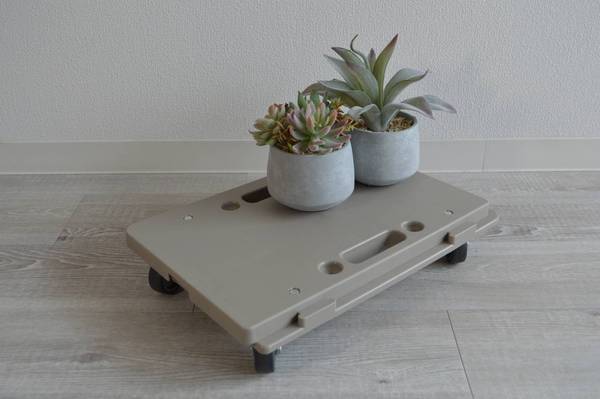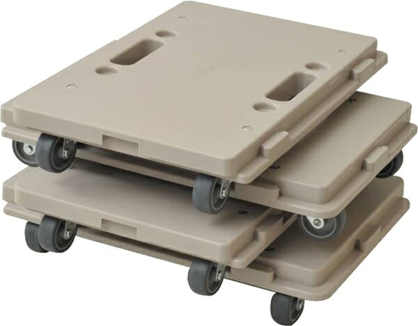 重たい荷物の移動などに非常に便利なお家の中で使える小さな台車。縦横に連結も可能なので載せるモノの大きさに合わせることができます。家電や衣類の土台、押し入れやクローゼットからの出し入れをスムーズにしたり、鉢植えや観葉植物、家具など重いものの移動に活用したり、アイデア次第で色々な場所でご利用ができます。床を傷つけにくいエラストマー製キャスターを搭載しておりますので、安心して使用ができます。