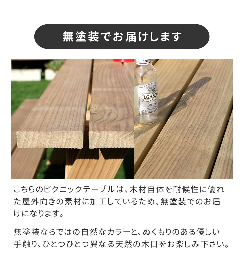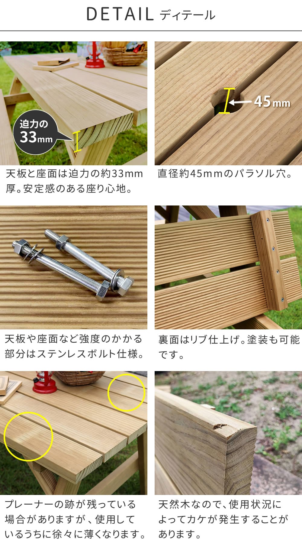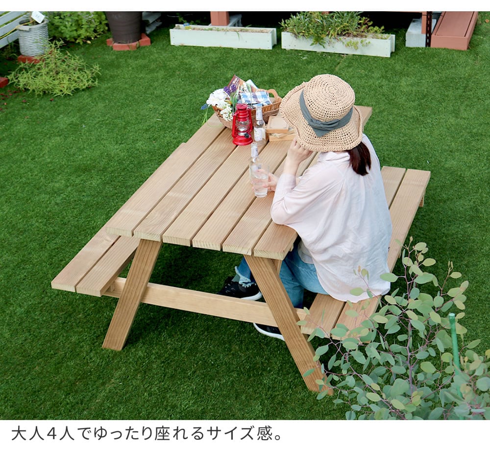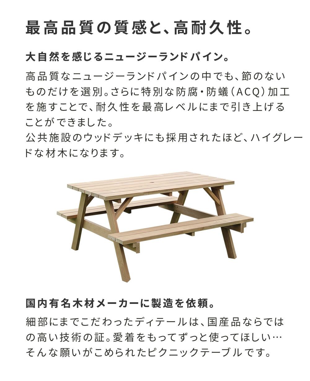日本製ニュージーランドパインピクニックテーブル 幅147(防腐加工) 無塗装