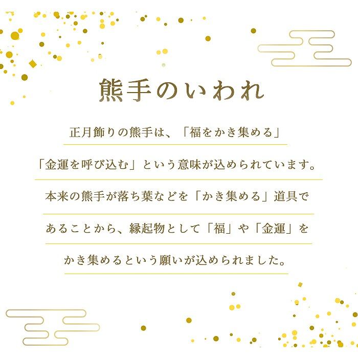 縁起物の熊手を、華やかな造花やドライフラワーで上品にアレンジしました。
