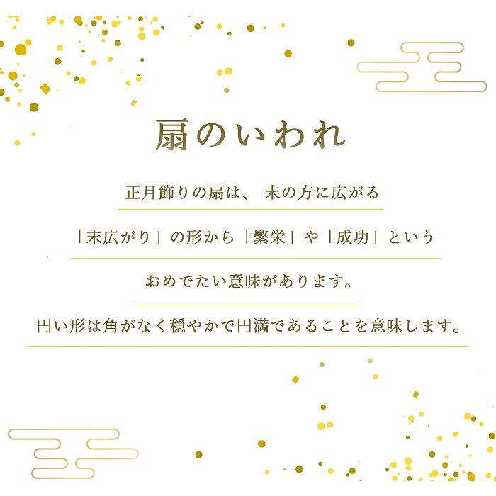 新しい年の始まりにふさわしい華やかな扇型のアレンジメント。