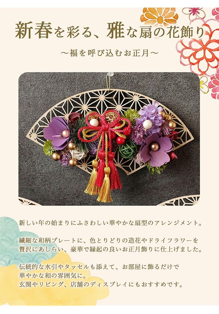 扇飾り お正月飾り NY扇プレートアレンジ はんなり金平糖 NY520 朱金の御殿 NY522 紫紺の晴れ衣 NY523 月飾り ドライフラワー おしゃれ 3種類 正月 置物 玄関 コンパクト インテリア 縁起物 モダン アレンジ 花 マンション 室内 ドア しめ飾り 玄関飾り 送料無料 NY-O