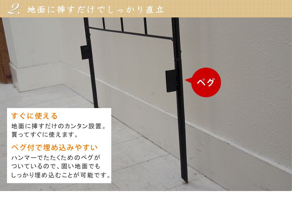 ・基本的に埋め込み部分をしっかり埋め込んで頂ければ自立しますが、柔らかすぎる地面などでは倒れる恐れがありますので、お客様自身で固定いただくか、ご使用をお避けください。