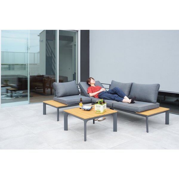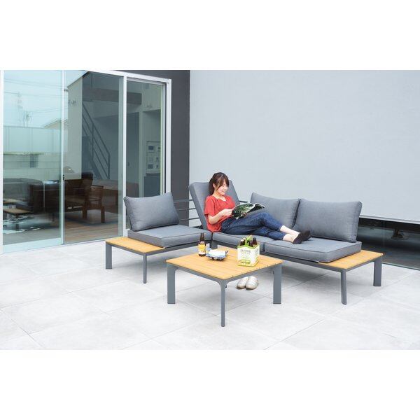 東谷 ガーデンソファ&テーブルセット 組立式 ソファ:W231×D166/69.5×H74×SH40 テーブル:W70×D65×H35.5 ダークグレー アルミ ポリエステル 樹脂 ODS-50