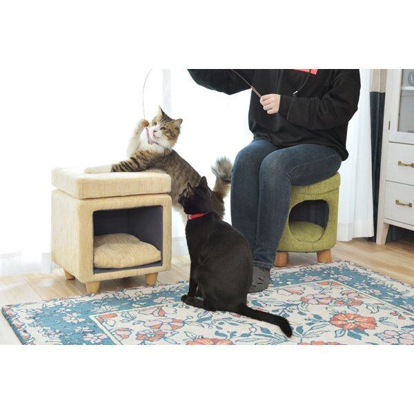 ペットがくつろげるペットハウススツール。座って一緒にくつろぐことができます。