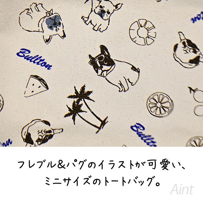 ミニトート トートバッグ フレブル パグ ブルトン Bulton ランチトート フレンチブルドッグ 犬雑貨 お散歩バッグ ランチバッグ ミニバッグ 軽量バッグ サブバッグ アロハ柄 犬好きプレゼント BULTON プレゼント ギフト PETJ892910