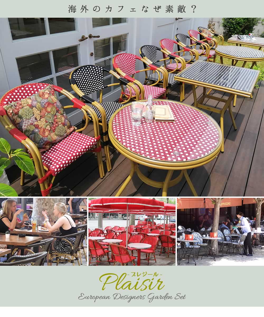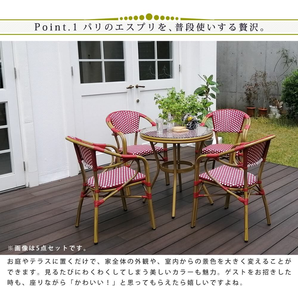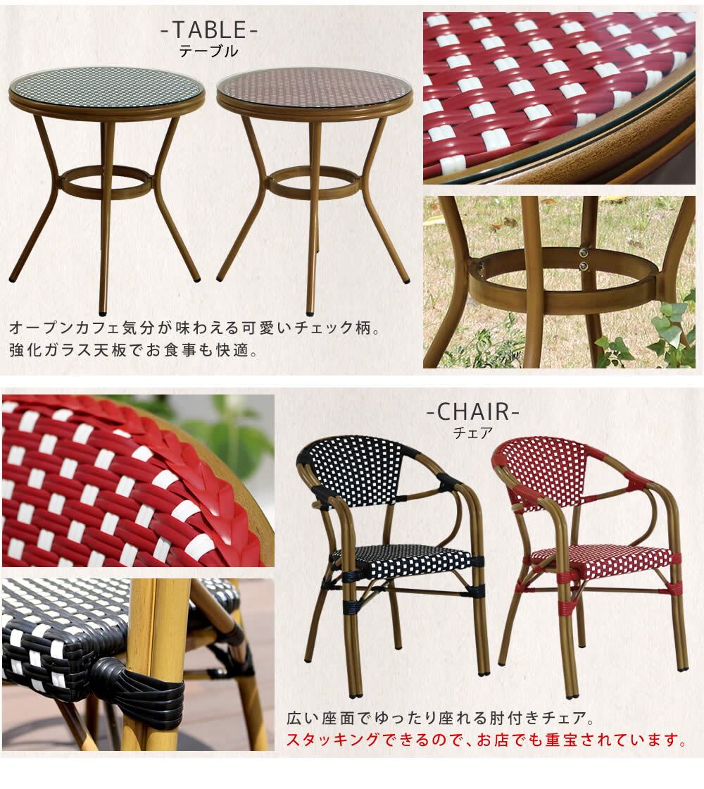 住まいスタイル ラウンドテーブル3点セット「プレジール」<br>【送料無料 簡単組立 ガーデンテーブル PEラタン テラス 庭 レッド ブラック アルミ モダン ラウンド イングリッシュガーデン ファニチャー シンプル 欧州 インテリア 家具 チェア カフェ】