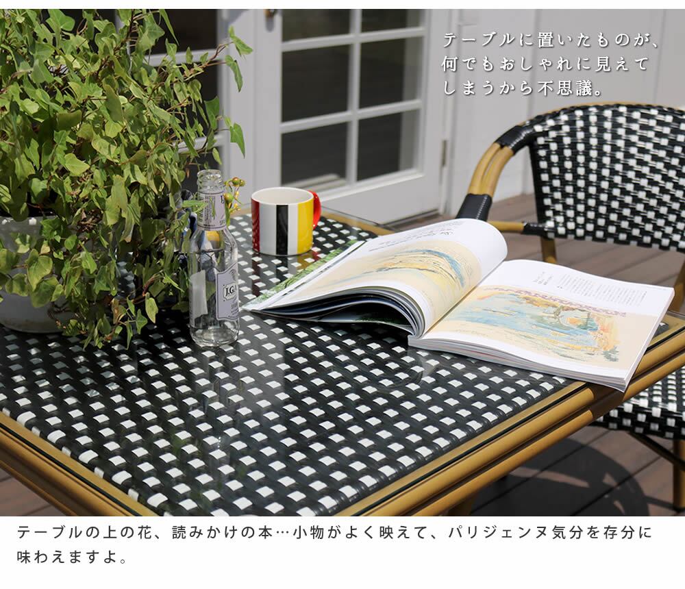 住まいスタイル スクエアテーブル3点セット「プレジール」<br>【送料無料 簡単組立 ガーデンテーブル PEラタン テラス 庭 レッド ブラック アルミ モダン スクエア イングリッシュガーデン ファニチャー シンプル 欧州 インテリア 家具 チェア カフェ】