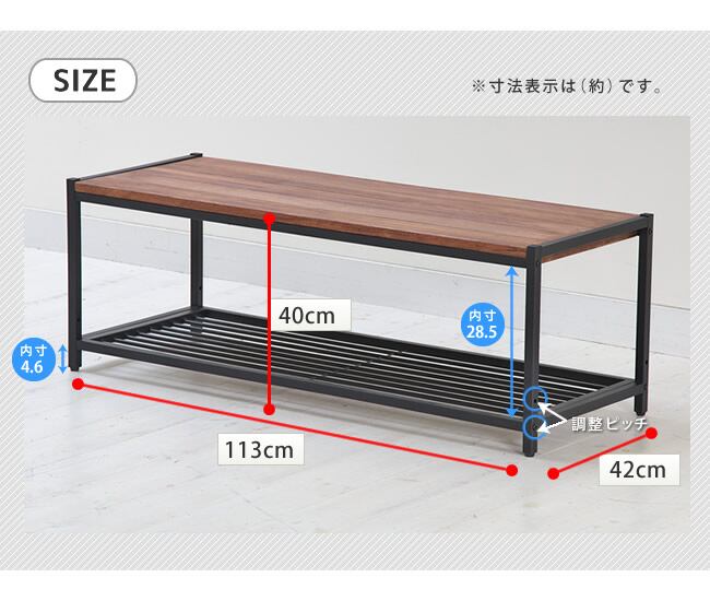 ■サイズ 本体:幅 約1130×奥行 約420×高さ 約400mm 天板厚:約20mm 調整ピッチ1ヶ所:約50mm間隔