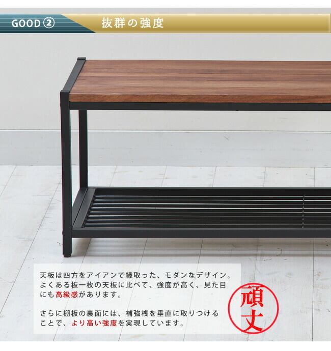 長く使うほど愛着と味わいが増すのが特徴です。天板は四方をアイアンで縁取った、