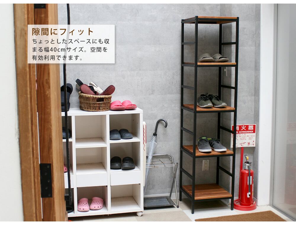 住まいスタイル 木製 アイアン ラック シェルフ 【 ブリック / brick ラックシリーズ5段 40×40×175 PRU-4040175 送料無料 天然木 簡単組立 モダン アンティーク カフェ 収納 ウッドラック インテリアラック 棚 ブラウン オープンラック リビング 北欧 幅40cm 奥行40cm 】