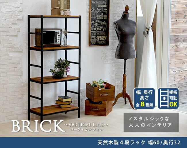 住まいスタイル ブリックラックシリーズ4段タイプ 60×32×135【送料無料 簡単組立 4段 アンティーク モダン ナチュラル オイル ミッドセンチュリー ウッド スタイリッシュ シンプル シェルフ ラック ハンガー インテリア 家具 天然 おしゃれ カフェ バーチカルライン】