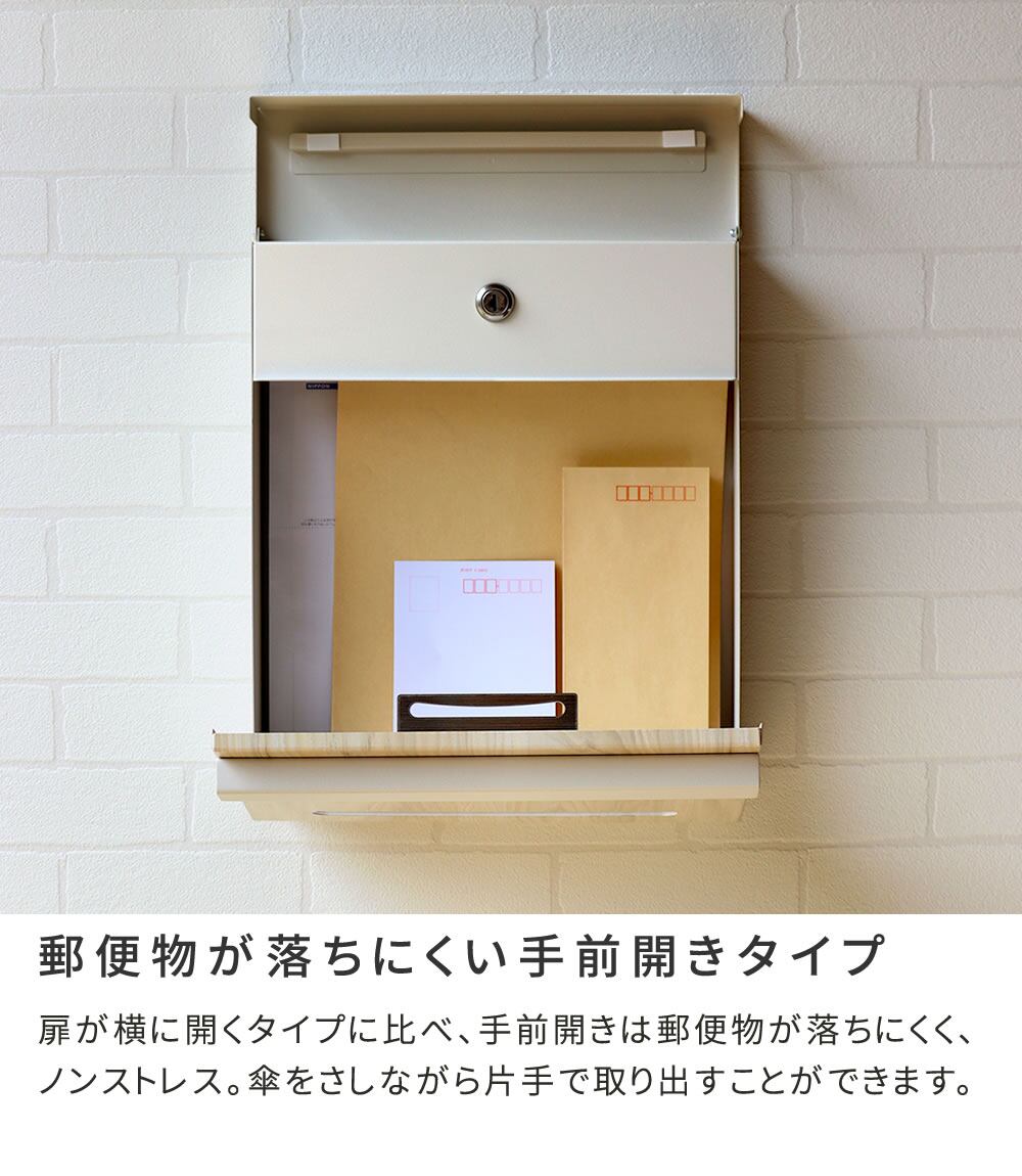 ●郵便物が落ちにくい手前開きタイプ