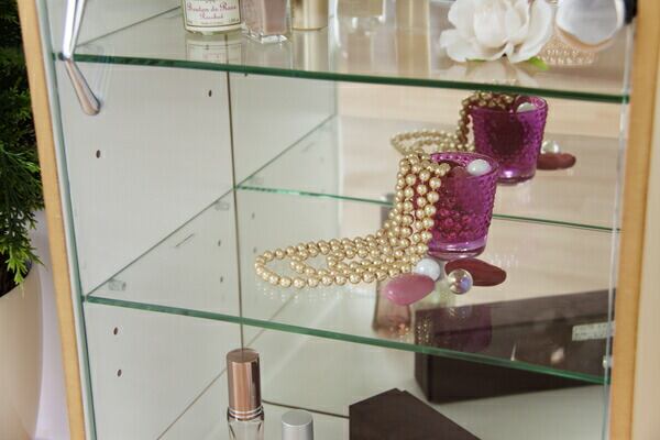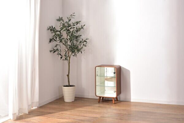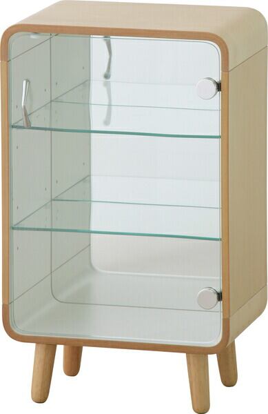 東谷 コレクションシェルフS W36×D26.5×H60 ナチュラル/ブラウン 天然木化粧繊維板 天然木(ラバーウッド) ウレタン塗装 飛散防止ミラー 強化ガラス
